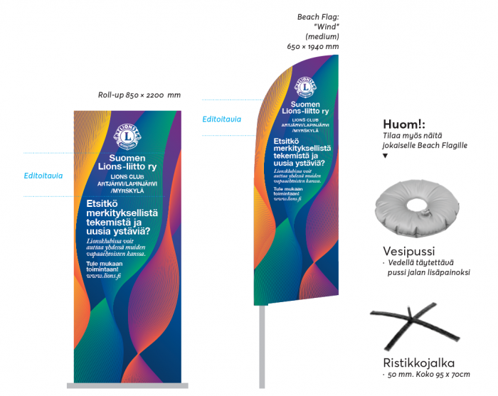 2 a-c) Vuonna 2022 tuotetuista kaksikielisistä roll upista löytyy myös piireille/klubeille suunnattu malli, vaihtoehdot 2 b ja 2 c) |