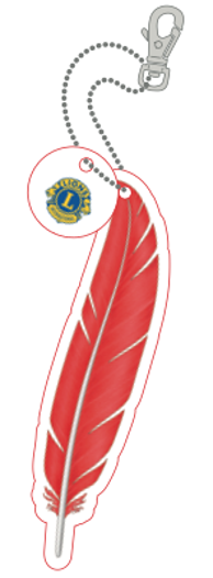 Den helt inhemska reflexen har modellregistrerats för Lions-organisationen. Reflexens fjäder, tillverkad av mjukt material, är cirka 10 cm lång och har en separat Lions-logotyp på kulkedjan.