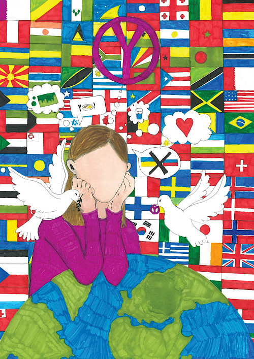 Suomea lähtee edustamaan 6-luokkalaisen Miisa Häyrisen työ G-piiristä. Työ sai 30 prosenttia annetuista äänistä ja tuli jaetulle toiselle sijalle myös Facebookissa järjestetyssä yleisöäänestyksessä. Miisa Häyrisen mukaan "Rauhankyyhky levittää rauhan koko universumille. Ensin rauha on tullut maahan ja sieltä se leviää avaruuteen asti. Voimme olla erilaisia, mutta silti arvokkaita."