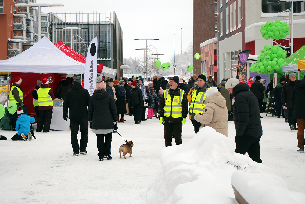 VANTAA. Hieno talvisää ja kymmenet myynti- ja esittelyteltat antoivat mahdollisuuden kokea yhteisöllisyyttä sunnuntaina 11.12.2022 Kivistön joulutorilla juna-aseman läheisyydessä Topaasiaukiolla.