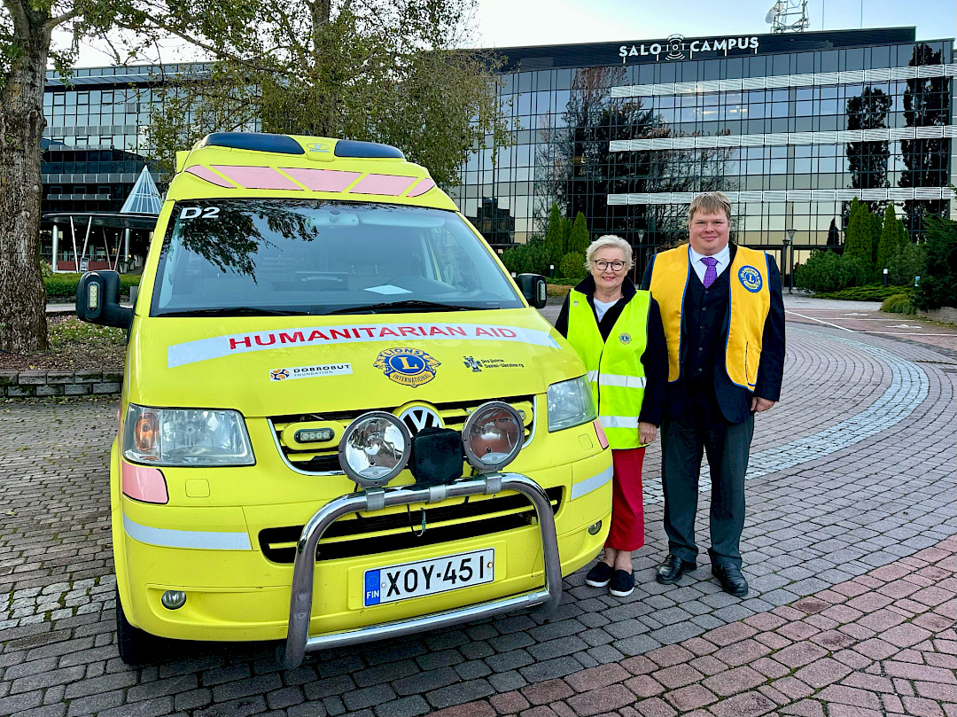 Kuvateksti: Lions-ambulanssihanke on ottanut vauhtilähdön ja ensimmäinen ambulanssi on jo hankittuna. Hannele-Tanner-Penttilä ja Jari Järvelä olivat esittelemässä sitä Salossa.
